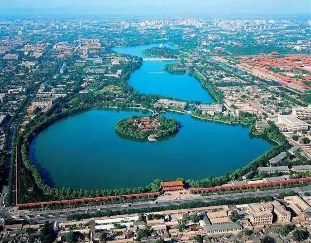 Al sur del lago Taiye, el emperador ordenó la construcción de otro lago, con forma redonda y una isla en su centro, que conectaría con el lago Taiye a través de un estrecho cruzado por un puente. Con la tierra extraída para crear el nuevo estanque se erigió la célebre colina artificial Jingshan, ubicada detrás de la Ciudad Prohibida y desde cuya cima se disfruta de una incomparable vista panorámica del palacio imperial.