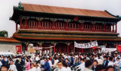 Xinhuamén durante las protestas de Tiananmén en 1989.