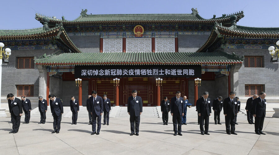 Los líderes chinos en Zhongnanhái rindiendo tributo a las víctimas de la COVID-19 (04/04/2020).